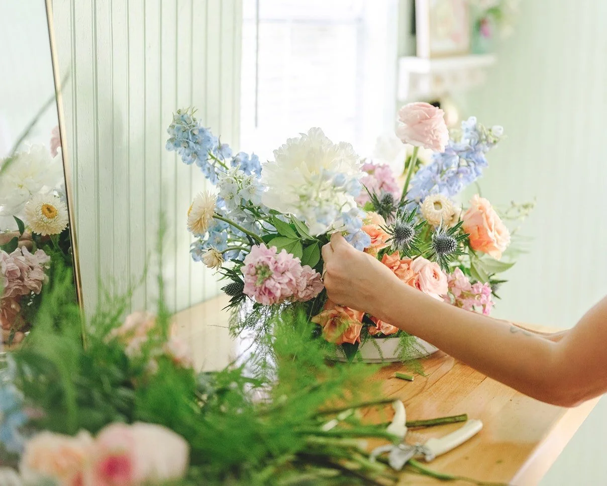 Let’s create something beautiful together! Private workshops are a hands-on experience where you’ll learn the basics of floral design and create your own arrangement.